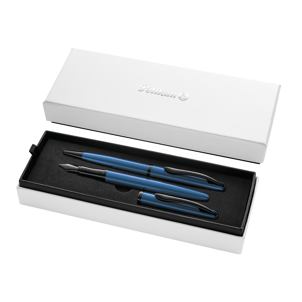 Spójny design pióro wieczne i długopis w tym samym, eleganckim wykończeniu Metalowa obudowa z perłowym połyskiem podkreśla prestiż zestawu Oba produkty doskonale wyważone komfortowe w codziennym użytkowaniu Klipsy sprężynowe w kształcie dziobu pelikana detal z charakterem Długopis z obrotowym mechanizmem szybki i wygodny w użyciu Nadaje się do nadruku i grawerowania idealny na prezent firmowy