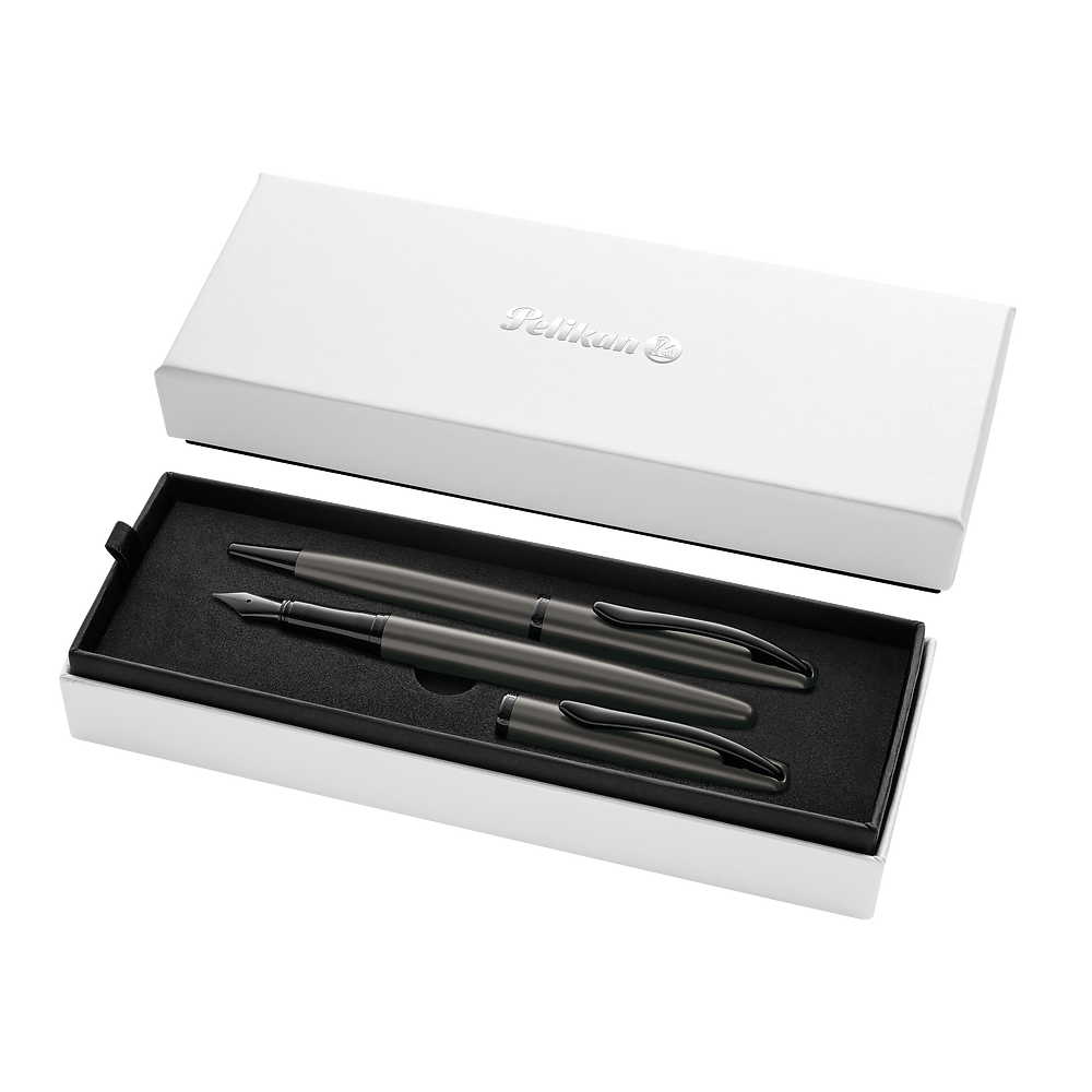 Spójny design pióro wieczne i długopis w tym samym, eleganckim wykończeniu Metalowa obudowa z perłowym połyskiem podkreśla prestiż zestawu Oba produkty doskonale wyważone komfortowe w codziennym użytkowaniu Klipsy sprężynowe w kształcie dziobu pelikana detal z charakterem Długopis z obrotowym mechanizmem szybki i wygodny w użyciu Nadaje się do nadruku i grawerowania idealny na prezent firmowy