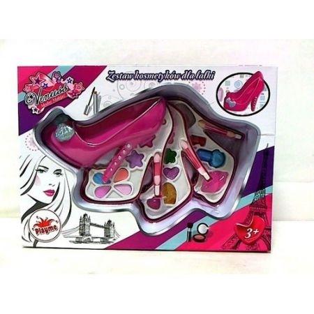 Zestaw kosmetyków do makijażu dla lalki w kształcie bucika.