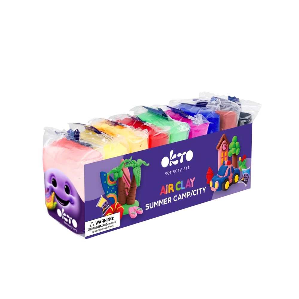W komplecie znajdziesz: lekką mase plastyczna w 9 kolorach, wygodne narzędzia dla dzieci, woreczki do przechowywania oraz instrukcję dla nauczyciela z gotowymi pomysłami na projekty.