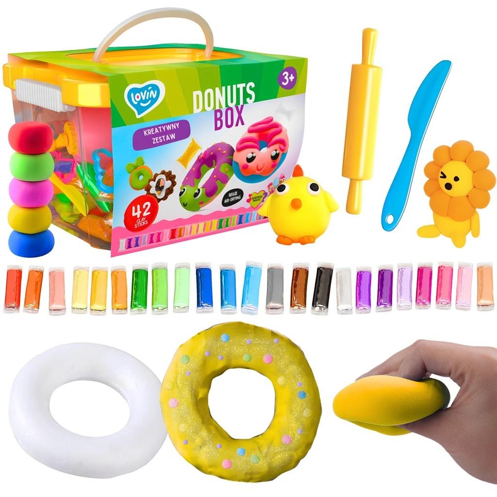 Kolekcja BOX to stylowy pojemnik z zamknięciem wieczka w tekturowym opakowaniu. Zestaw zawiera dużo materiału modelarskiego oraz różne plastikowe akcesoria: foremki, kolorowe dodatki do zdobienia produktów, plastikowe zawieszki z motywem lub inne akcesoria. W zestawie wygodna instrukcja do modelowania krok po kroku pierwszych pomysłów.