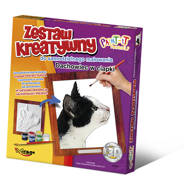 Obrazek pupila w Zestawach Kreatywnych Mirage Hobby, to wypukła wytłoczka 3D. Ponieważ jest ona wykonana z plastiku, możliwe jest umycie obrazka ciepłą wodą z mydłem i powtórne jego pomalowanie. Dzięki temu można poprawiać i dopracowywać swoje dzieło do uzyskania pożądanego efektu.