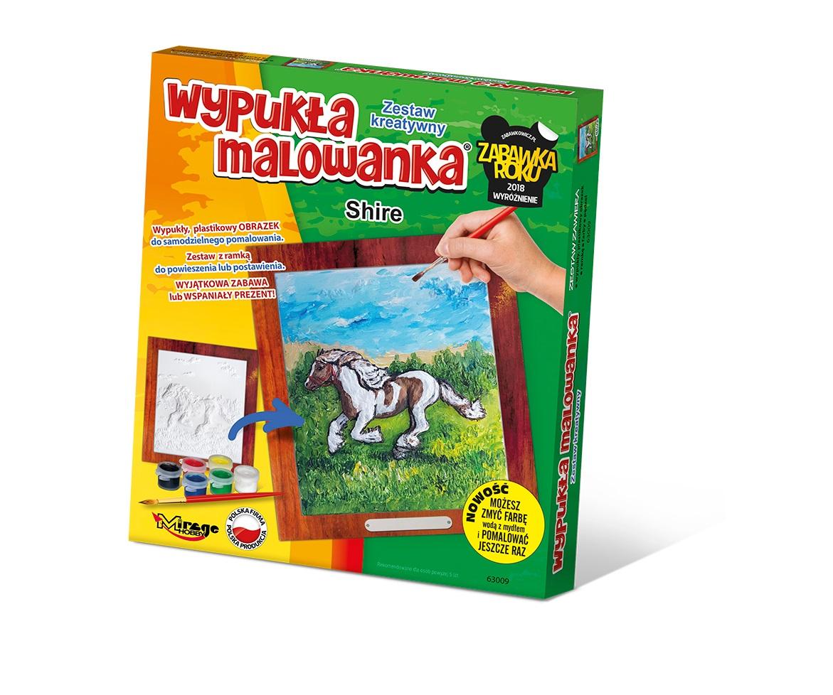 Wypukłe Wytłoczki 3D od Mirage Hobby Stwórz niepowtarzalną dekorację. Odkryj malowanie na nowo i to w wymiarze 3D. Nowa linia zestawów kreatywnych to możliwość stworzenia własnej, niepowtarzalnej galerii ulubionych zwierząt. Zestawy kreatywne od Mirage Hobby proponują kolekcję obrazków, których bohaterami są konkretne rasy zwierząt. realistyczne odzwierciedlenie danej rasy psa, kota, konia, czy futrzaka, wyróżnia tę serię na tle innych zestawów do samodzielnego malowania. Kolekcja obejmuje 4 serie po 8 wzorów. Np. w serii koni znajdziemy konia: andaluzyjskiego, angielskiego, arabskiego, bretońskiego, Holsztyńskiego, Quoter Horse, Mustanga, Trakeńskiego. W serii psów nie zabrakło choćby yorka. Obrazek pupila w Zestawach Kreatywnych Mirage Hobby, to wypukła wytłoczka 3D. Ponieważ jest ona wykonana z plastiku, możliwe jest umycie obrazka ciepłą wodą z mydłem i powtórne jego pomalowanie. Dzięki temu można poprawiać i dopracowywać swoje dzieło do uzyskania pożądanego efektu.