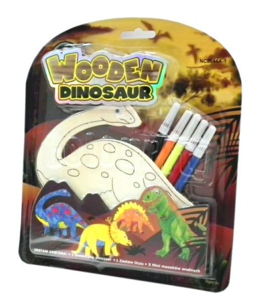 Zestaw drewniany "Dinozaur 1" z kompletem mazaków 5 sztuk.