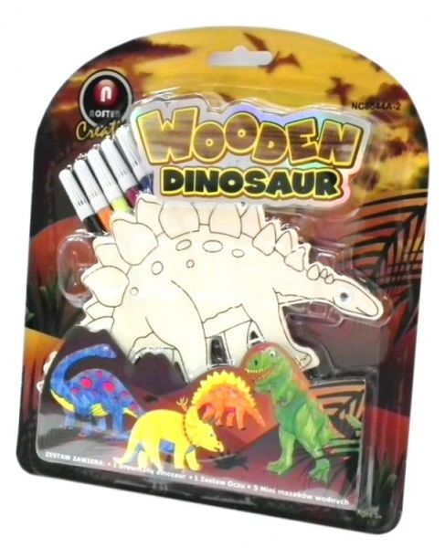 Zestaw drewniany "Dinozaur 2" z kompletem mazaków 5 sztuk.