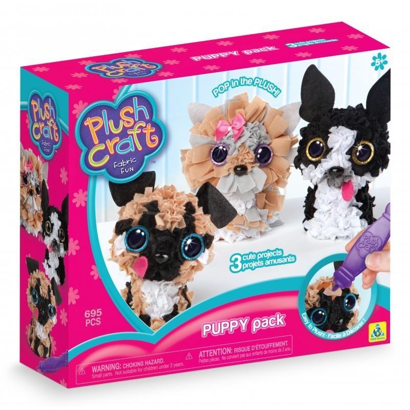 Ręcznie tkane małe szczeniaczki. Kolorowe kawałeczki materiału i inne elementy wkłuwa się za pomocą specjalnego szydełka w wyprofilowane wzory wg wzoru na opakowaniu bądź własnego pomysłu.