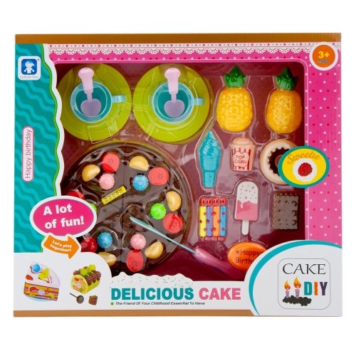 Na każdym przyjęciu urodzinowym musi się znaleźć pyszny tort. Zestaw urodzinowy MEGA CREATIVE zapewni każdemu dziecku wspaniałą zabawę urodzinową! Ten kolorowy tort urodzinowy składa się z 5 elementów. Sam tort ozdobiony jest owocami oraz różnymi słodkościami. Dodatkowo do zestawu dołączone są słodkości, 4 świeczki, tabliczka ozdobna na tort, 2 talerzyki, 2 filiżanki z łyżeczkami oraz owoce. Całość wykonana jest z plastiku. Przeznaczony dla dzieci w wieku: 3+. Wymiary opakowania (dł.x wys.x gł.) [cm]: 40x34x9