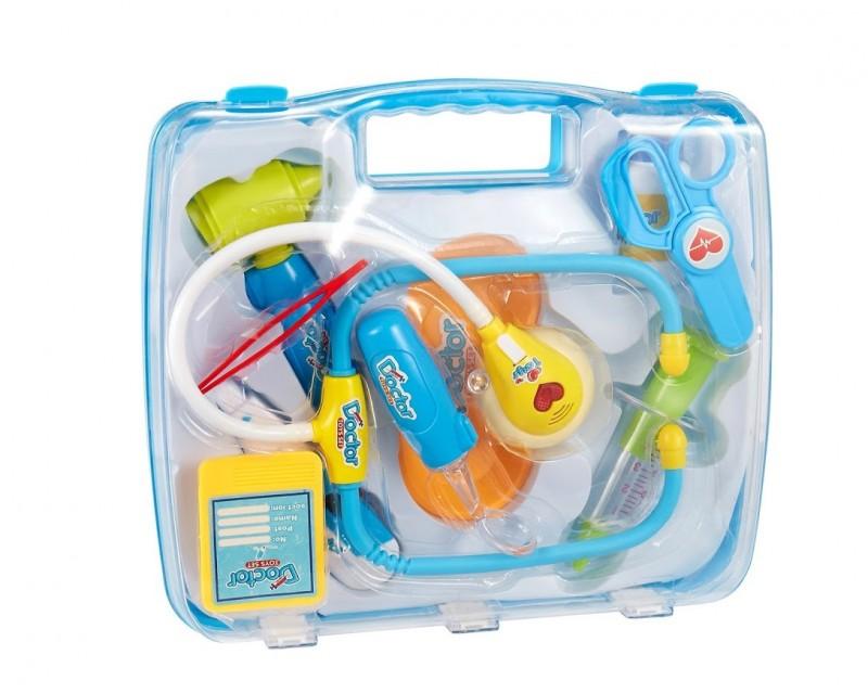Zestaw lekarski w kolorze niebieskim. Produkt na baterie.