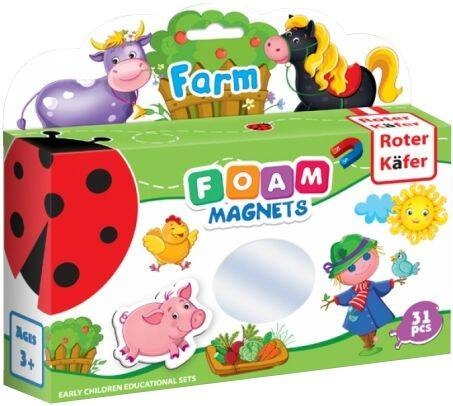 Każdy element zestawu to magnes z wyjątkową ilustracją, która przedstawia zwierzęta i przedmioty związane z życiem na farmie. Jest to idealny zestaw dla małych dzieci.