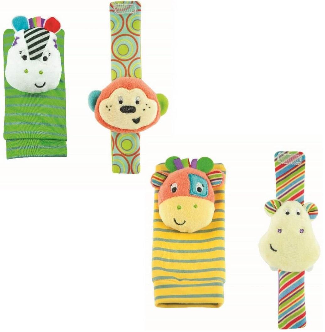 W 2 zwierzątkach ukryte są grzechotki, które słychać podczas potrząsania nóżkami i rączkami.