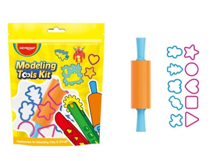 zestaw narzędzi do formowania ciastoliny: wałek i 10 form