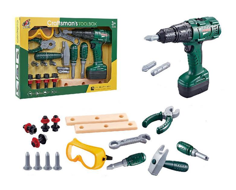 - wiertarko-wkrętarka i dodatkowe wkręty - zestaw podkładek i śrubek - śrubokręty, młotek, obcęgi, klucz - gogle