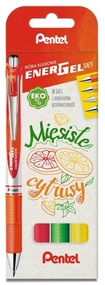 Zestaw piór EnerGel BL77 mięsiste cytrusy w etui 4 kolory