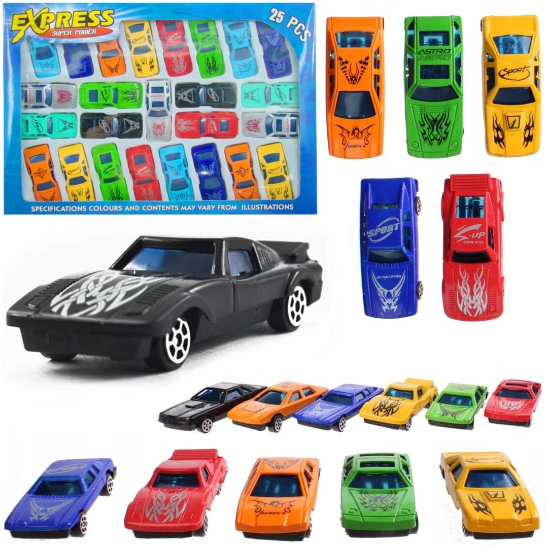 Zestaw Samochodzików EXPRESS SUPER POWER - 25 Resoraków Sportowych Przygotuj się na niezapomniane wyścigi z ogromnym zestawem 25 samochodzików z serii EXPRESS SUPER POWER! To idealny prezent dla każdego młodego entuzjasty motoryzacji, gwarantujący godziny dynamicznej i kreatywnej zabawy. Cechy zestawu: Bogata kolekcja: Zestaw zawiera aż 25 unikalnych modeli sportowych samochodów, co pozwala na organizowanie wielkich wyścigów i budowanie własnej floty. Sportowy design: Auta charakteryzują się dynamicznymi, agresywnymi kształtami i są ozdobione stylowymi grafikami (np. płomienie, paski), nadającymi im wyścigowy wygląd. Na karoserii widoczne są napisy takie jak "SPORT", "SPEED" czy "RACING". Intensywne kolory: Modele występują w różnorodnej kolorystyce (czerwień, żółć, zieleń, pomarańcz, niebieski, czerń), co ułatwia identyfikację i dodaje atrakcyjności zabawie. Materiał: Samochodziki wykonane są z trwałego tworzywa, przystosowane do szybkiej jazdy i intensywnej zabawy. Wielkość opakowania: 34x23x2 cm Idealne do zabawy: Zestaw jest doskonały do odgrywania ról, tworzenia własnych scenariuszy wyścigowych oraz do poszerzania kolekcji resoraków. Zapewni dziecku rozrywkę na długi czas.