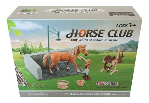Zawiera prysznic dla koni, figurki konia i opiekuna oraz akcesoria