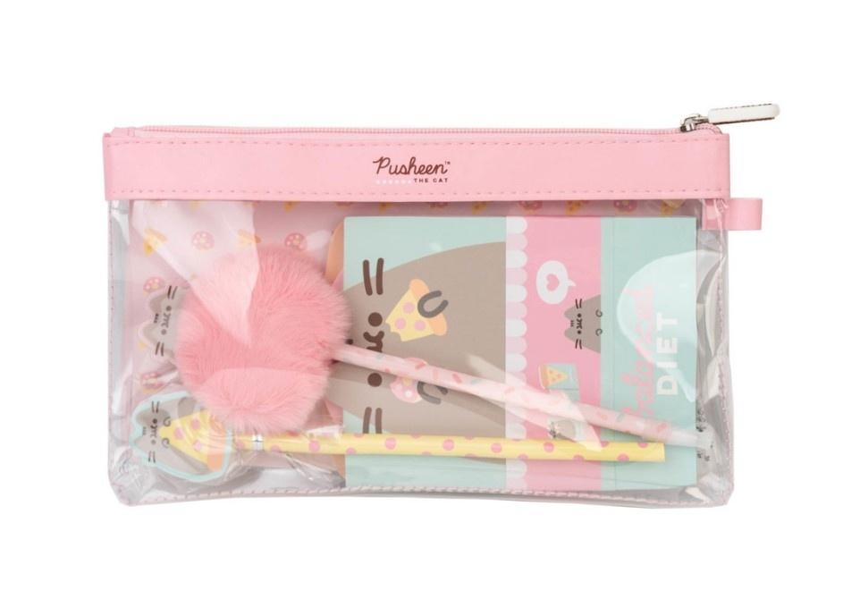 Zestaw piśmienniczy zawierający praktyczne przybory biurowe i szkolne.