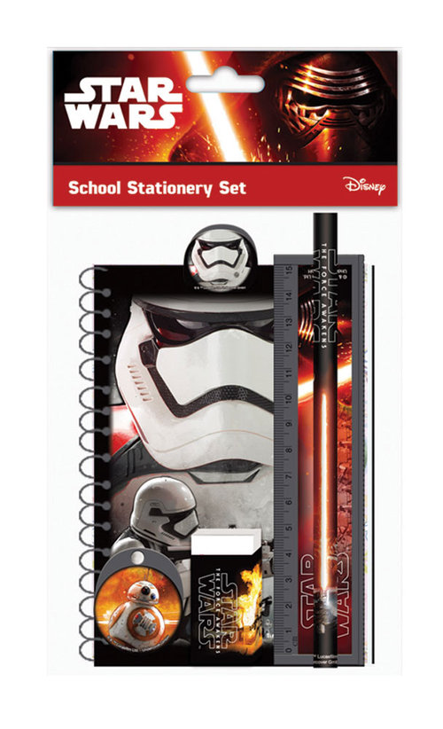 Zestaw szkolny Star Wars zawiera: -blok spiralny -ołówek -gumkę -linijkę -temperówkę