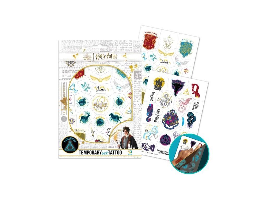 Zestaw tymczasowych tatuaży dla dzieci z motywem Harry'ego Pottera.