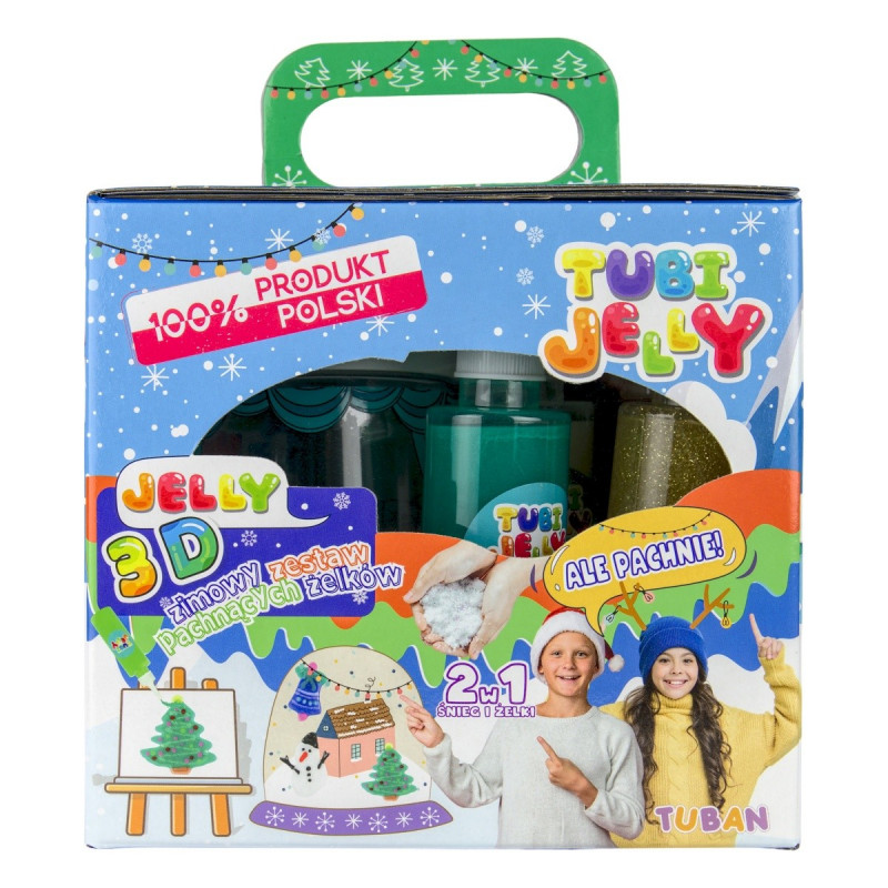 Kreatywny zestaw do tworzenia trójwymiarowych, pachnących figurek. Możesz skorzystać z gotowych wzorów lub użyć własnej wyobraźni i stworzyć oryginalną figurkę. Zestaw zawiera: - 6 pachnących żelowych płynów o pojemności 150 ml, w następujących kolorach: brązowym (zapach orzecha laskowego) zielonym (zapach sosnowych igieł) granatowym (zapach dojrzałej jagody) czerwonym (zapach soczystej truskawki) białym (zapach wanilii) oraz brokatowym złotym - 12 szablonów z zimowymi wzorami; - 1 czystą folijkę, na której możesz narysować swój własny, unikatowy wzór; - 6 saszetek z aktywatorem 5 g; - 1 saszetkę ze sztucznym śniegiem; - miskę; - akwarium 1 litr. Wiek 8+