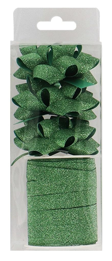 Zestaw wstążka brokatowa 1cm x 10m + 3 rozetki 6cm
