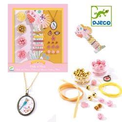 Zestaw artystyczny do tworzenia biżuterii.Zestaw zawiera: 4 pudełka z koralikami, zestaw 5 wstążek, łańcuszek z medalionem, 11 ozdób z motywem kwiatów.Wspaniały kolorowy zestaw do tworzenia naszyjników oraz bransoletek dla prawdziwych dam.Zestaw dla dzieci powyżej 7 roku życia.