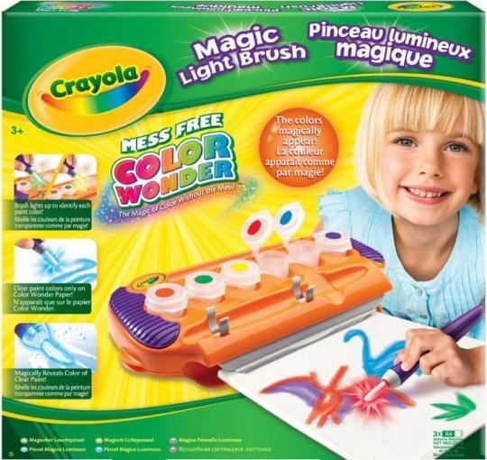 Bezbarwne farby uzyskują kolor w momencie przeniesienia ich świetlnym pędzlem na specjalny papier Color Wonder. Farby łatwo można zmyc za pomocą wody i mydła.ZAWARTOŚĆ: 6 farbek poj. 53 ml. 30 kartek papieru Color Wonder.Do poprawnego działania zestawu niezbędne są 3 baterie typu AAA LR 3 1,5V - zestawnie zawiera baterii.