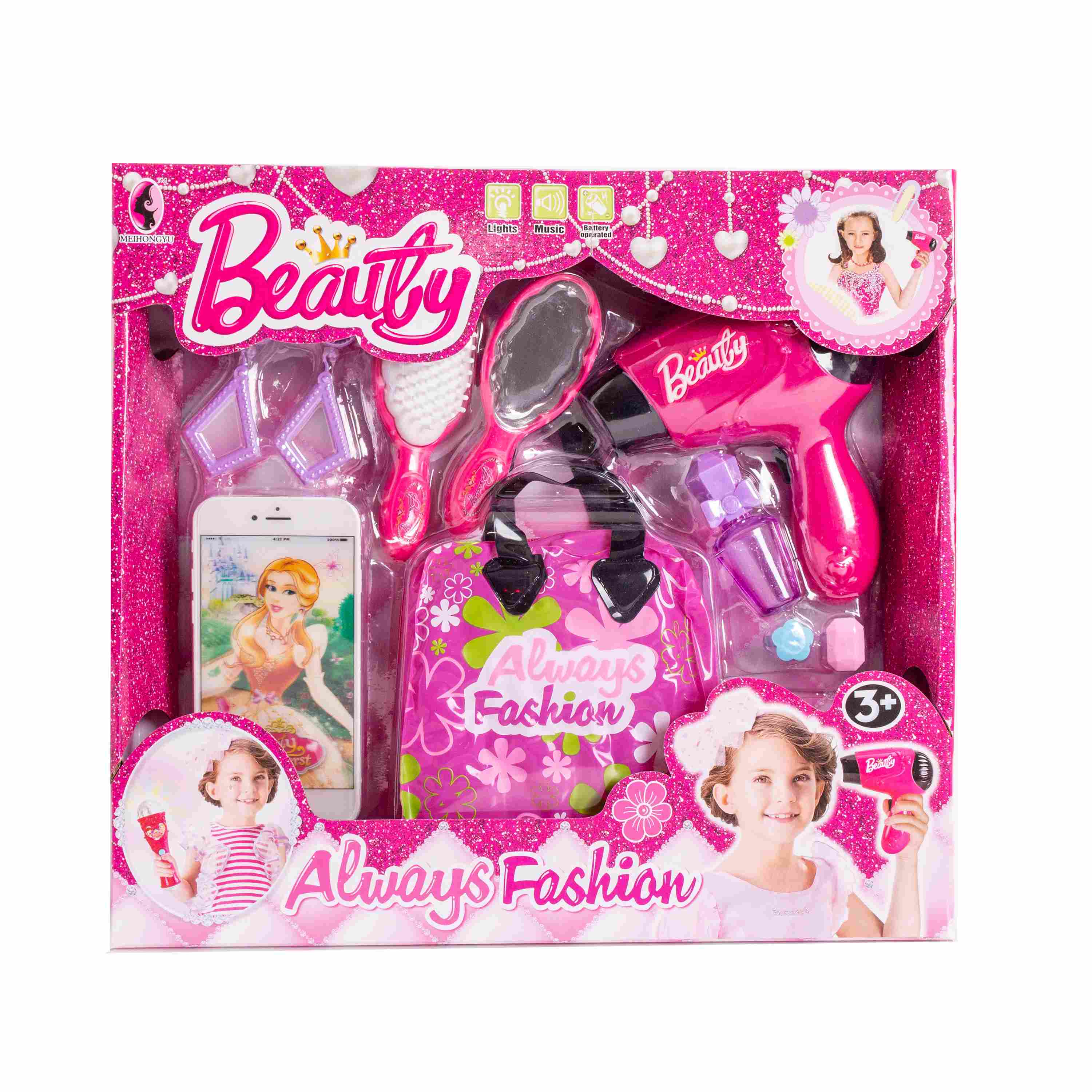 torebka, smarfon, suszarka do włosów, szczotka, lusterko, kolczyki, pierścionki, flakonikzasilanie: 1xAA (brak w zestawie)