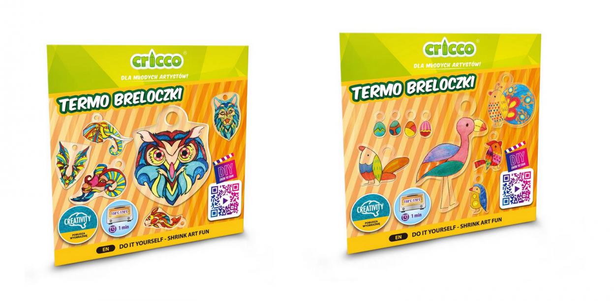 Termo breloczki i termo zawieszki to produkty, których jeszcze nie znacie. Opakowanie zawiera zestaw wyciętych w odpowiednie kształty obrazków z termokurczliwej folii do samodzielnego pokolorowania kredkami. Po wypieczeniu w piekarniku folia kurczy się, tworząc kolorowe breloczki lub zawieszki. Samodzielnie wykonany breloczek do kluczy będzie najlepszym prezentem dla mamy i taty.