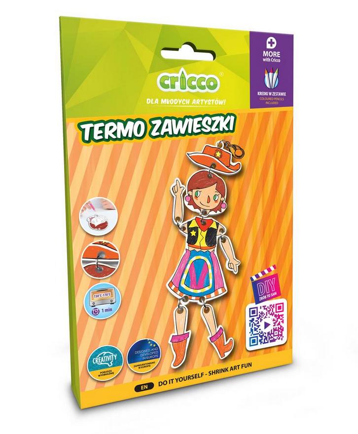 Termo breloczki i termo zawieszki to produkty, których jeszcze nie znacie. Opakowanie zawiera zestaw wyciętych w odpowiednie kształty obrazków z termokurczliwej folii do samodzielnego pokolorowania kredkami. Po wypieczeniu w piekarniku folia kurczy się, tworząc kolorowe breloczki lub zawieszki. Samodzielnie wykonany breloczek do kluczy będzie najlepszym prezentem dla mamy i taty.