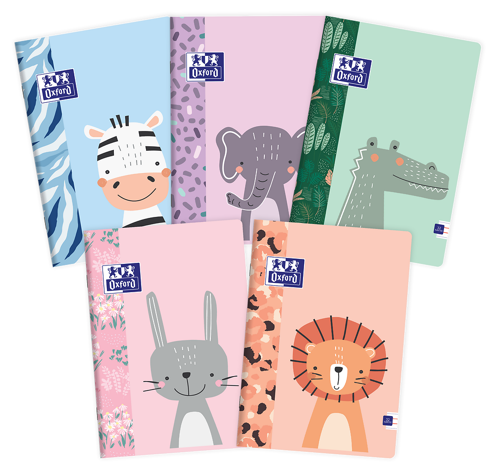 Kolekcja zeszytów Oxford Kids w zupełnie nowej odsłonie - połączenie wesołych zwierzaków i prostych, kolorowych wzorów. Poznaj 5 nowych zwierzaków Kids: zebrę, lwa, słonia, królika i krokodyla. Każdy zwierzak ma swój własny kolor i wzór, który pokrywa całą tylną okładkę zeszytu. Dzięki wysokiej jakości Oxford, zeszyty będą towarzyszyły dziecku przez cały rok szkolny, a uśmiechnięte zwierzaki umilą codzienną naukę.Śnieżnobiały, aksamitnie gładki papier Optik Paper