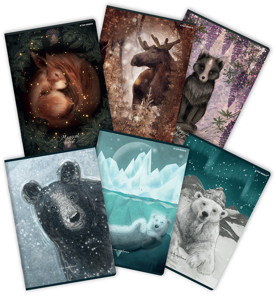 • Zadrukowane okładki wewnętrzne doskonale korespondują z ilustracjami na przednich okładkach.
