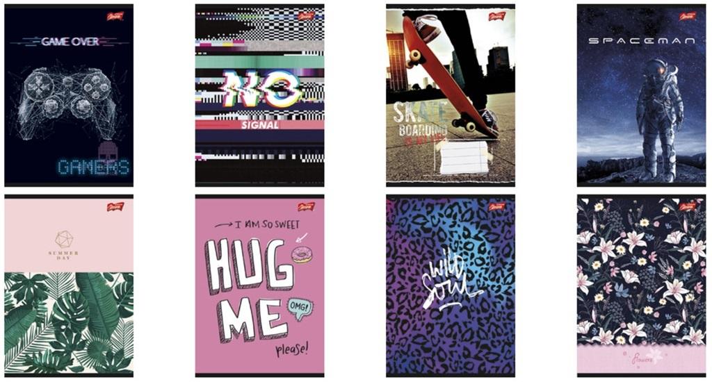 Zeszyt laminowany A4 kratka, 60 kartek, mix wzorów, 10 sztuk w opakowaniu zbiorczym.