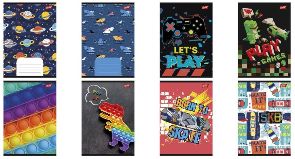 Zeszyt laminowany A5, 16 kartek, kratka, mix wzorów, 15 sztuk w opakowaniu zbiorczym. Zeszyty Unipap charakteryzuje wysoka jakość papieru, estetyczne wykończenia, modna grafika okładek. Okładka kredowa z zadrukiem wewnętrznym o gramaturze 250 g/m2.