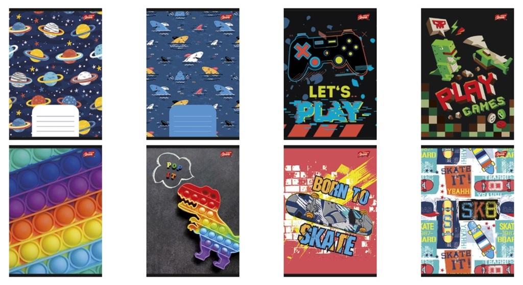Zeszyt laminowany A5, linia podwójna dwukolorowa, 16 kartek, mix wzorów, 15 sztuk w opakowaniu zbiorczym. Zeszyty Unipap charakteryzuje wysoka jakość papieru, estetyczne wykończenia, modna grafika okładek. Okładka kredowa z zadrukiem wewnętrznym o gramaturze 250 g/m2 wykorzystuje najnowsze motywy wzornicze UNIPAP.