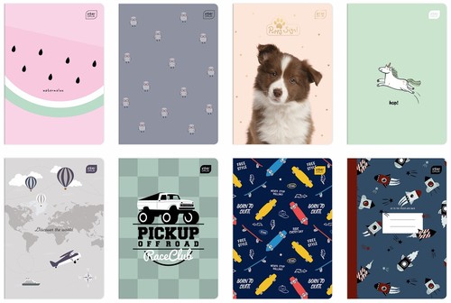 Zeszyt A5 linia, 16 kartek, mix wzorów. 20 sztuk w opakowaniu zbiorczym.