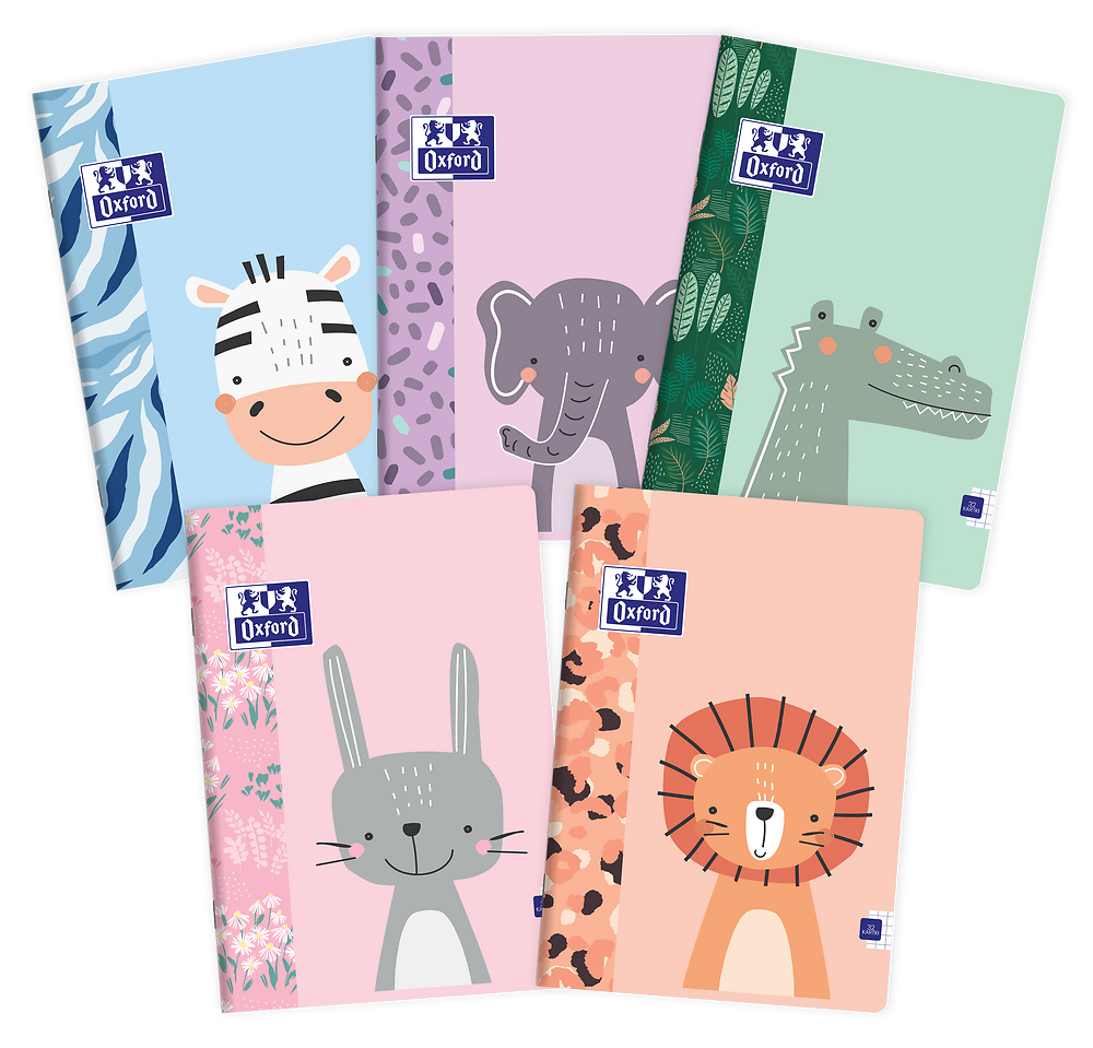 Kolekcja zeszytów Oxford Kids w zupełnie nowej odsłonie - połączenie wesołych zwierzaków i prostych, kolorowych wzorów. Poznaj 5 nowych zwierzaków Kids: zebrę, lwa, słonia, królika i krokodyla. Każdy zwierzak ma swój własny kolor i wzór, który pokrywa całą tylną okładkę zeszytu. Dzięki wysokiej jakości Oxford, zeszyty będą towarzyszyły dziecku przez cały rok szkolny, a uśmiechnięte zwierzaki umilą codzienną naukę.Śnieżnobiały, aksamitnie gładki papier Optik Paper