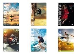 Zeszyty z kolekcji SPORT to dynamiczne ujęcia, podkreślone przez selektywnie lakierowane elementy.