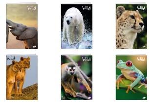Zeszyty z kolekcji WILD to błyszczące, okładki ze zdjęciami zwierząt w ich naturalnym środowisku.