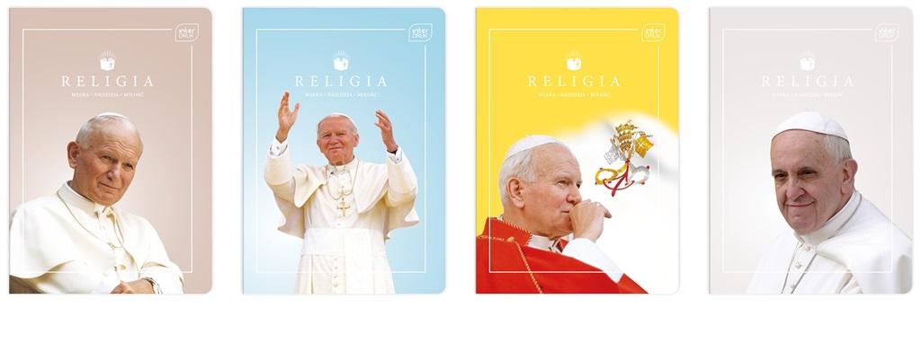 Format: A5. Liczba kartek: 32. Zadruk w kratkę. Okładka pokryta lakierem UV. Zaokrąglone rogi. 2 serie: Jan Paweł II / Franciszek oraz tradycyjne motywy religijne.