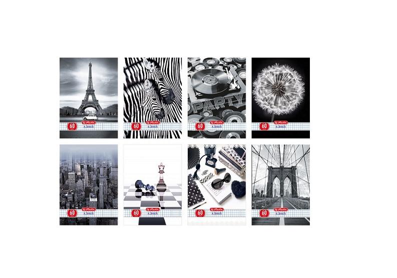Zeszyt A5/60k. kratka Black&White. 5 sztuk w opakowaniu zbiorczym. Wzory wysyłane losowo.