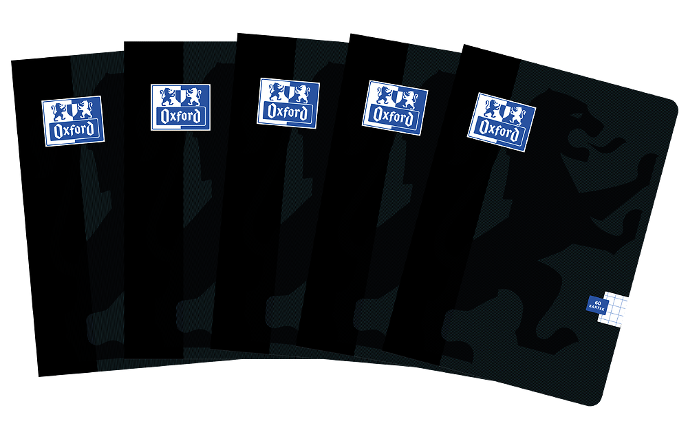 Zeszyt w formacie A5, 60 kartek w kratkę z marginesem. Laminowana okładka w kolorze czarnym. Gramatura papieru: 90g/m2. Opakowanie zawiera 5 szt.