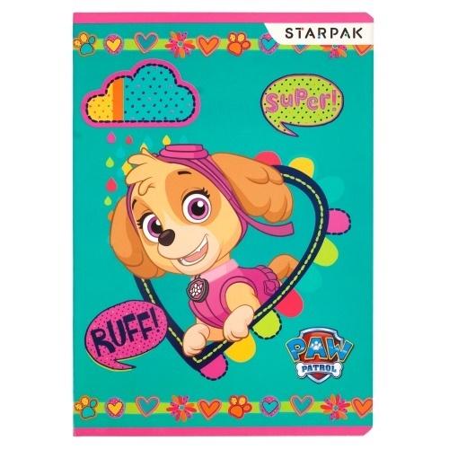 Zeszyt A5, 16 kartek w trzy linie kolorowe, w miękkiej oprawie. Oprawka zdobiona nadrukiem Paw Patrol. Zeszyt dostępny w dwóch wersjach graficznych.