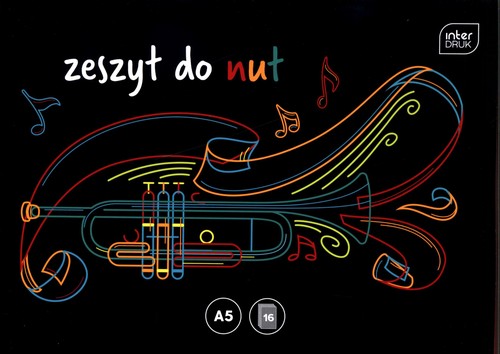 Zeszyt do nut A5, 16 kartek, mix wzorów. 10 sztuk w opakowaniu zbiorczym. Producent Interdruk.
