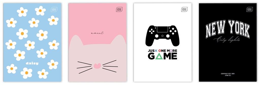 Zeszyt do słówek A6 kratka, 16 kartek, mix wzorów. 10 sztuk w opakowaniu zbiorczym. Producent Interdruk.