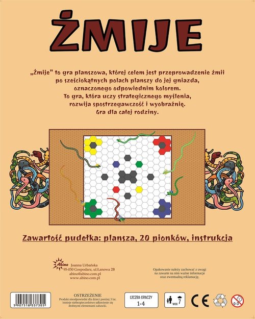 Gra planszowa której celem jest przeprowadzenie żmii po sześciokątnych polach planszy do jej gniazda oznaczonego odpowiednim kolorem.