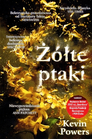 Wszędzie, gdzie spogląda, widzi Murpha. Wzdryga się za każdym razem, kiedy obok przejeżdża samochód. Jego palce chwytają karabin, którego nie ma i którego nie trzymał już od miesięcy. Nieznajomi obdarzają go szacunkiem, na jaki zasługuje bohater, ale on czuje, jakby znikał. W rok po powrocie z wojny nie możne odpędzić się od wspomnień i obrazów. Ciała skwierczące w rześkim porannym powietrzu. Promienie słońca przesmykujące się między gałęziami drzew. Kule wzbudzające obłoczki pyłu. Zmarszczki na wodzie drżące niczym struny. I obietnica, którą złożył jego matce. Że wróci z nim całym i zdrowym do domu. ,,Wojna próbowała nas zabić wiosną"". Tak rozpoczyna się przejmująca historia przyjaźni i starty. Dwóch szeregowców - dwudziestojednoletni Bartle i osiemnastoletni Murph - którzy poznali się podczas szkolenia dla rekrutów w Stanach, zostali rzuceni w wir wojny, na którą żaden z nich nie był gotów. Ich pluton walczy teraz w krwawych potyczkach, usiłując odbić irackie miasto Al Tafar. A Bartle obiecał, że sprowadzi Murpha żywego do domu. W niekończącej się serii następujących po sobie długich dni, dwaj młodzi żołnierze robią wszystko, by chronić się nawzajem przed nadciągającymi zewsząd niebezpieczeństwami: irackimi bojownikami, ekstremalnym zmęczeniem i wyczerpującym napięciem psychicznym, wynikającym z poczucia ciągłego, śmiertelnego zagrożenia. Kiedy rzeczywistość zaczyna zmieniać się w mglisty koszmar, Murph stopniowo traci kontakt z otaczającym go światem, a Bartle podejmuje działania, o które nigdy by siebie nie podejrzewał. Żółte ptaki to niezwykle oryginalna, głęboka i emocjonalna powieść, ukazująca dewastujący psychologiczny wpływ toczonej za granicami kraju wojny nie tylko na żołnierzy, ale także na ich pozostające w ojczyźnie rodziny. Zdaniem wielu krytyków dzieło Kevina Powersa to arcydzieło literatury wojennej.Najlepszy Debiut 2012 według `Guardiana` Nagroda Fundacji Hemingwaya i PEN Clubu