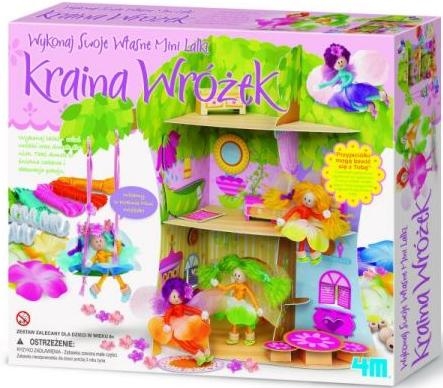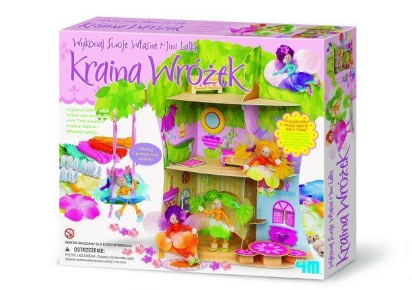 Witamy w Krainie Mini Wróżek! Wykonaj lalki - mini wróżki oraz domek dla nich. Lalkę wróżkę zrób z czyścika do fajki i wełny. Umieść wróżki w miniaturowym domku na drzewie i baw się nimi sama lub z przyjaciółkami. Zawartość opakowania umożliwia wykonanie aż 6 mini wróżek! Taki domek z czarodziejkami do świetna zabawa i urocza dekoracja pokoju. ZAWARTOŚĆ: rolka czyścika do fajki 6 zestawów koralików drewnianych, karton do budowy miniaturowego domku dla lalek, arkusz szablonów z meblami (ponad 20 sztuk sprzętów i wyposażenia), 6 motków kolorowej wełny, 6 kwiatków z kolorowego jedwabiu, 6 kolorowych płatków kwiatów, 15 sztuk małych kwiatów, klej, dwustronna taśma klejąca, dwustronna pianka samoprzylepna, kolorowa szczegółowa instrukcja.