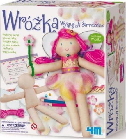ZRÓB TO SAM - LALKA WRÓŻKAWykonaj swoją własną wróżkę , wybierz dla niej imię i wpisz do świadectwa urodzenia. Wykonanie lalki bez użycia szpilek ani igły. Zestaw zawiera również materiały potrzebne do wykonania świeciącej różdżki.1miękka lalka,skrzydełka,wełna,koronka,wstążka,świadectwo urodzenia,klej,szablon na twarz i szablon na skrzydełka,gąbka, połyskująca gwiazdka,drucik,3 rodzaje jedwabnych kwiatów,kredki,srebrne sznurki,brokat,dwustronna taśma klejąca orazkolorowa szczegółowa instrukcja w języku polskim .