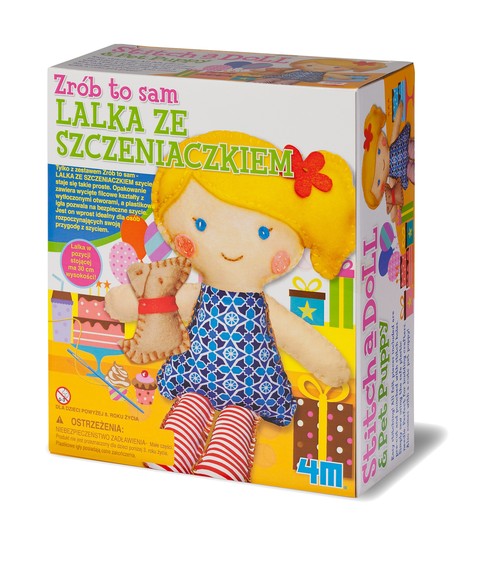 Tylko z zestawem Zrób to sam - Lalka ze szczeniaczkiem szycie staje się takie proste. Opakowanie zawiera powycinane filcowe kształty z wytłoczonymi otworami, a plastikowa igła pozwala na bezpieczne szycie. Jest on wprost idealny dla osób rozpoczynających swoją przygodę z szyciem.Zawartość:powycinane filcowe kształtywzorzysta tkanina na sukienkęmulinyplastikowe igływypełnienie