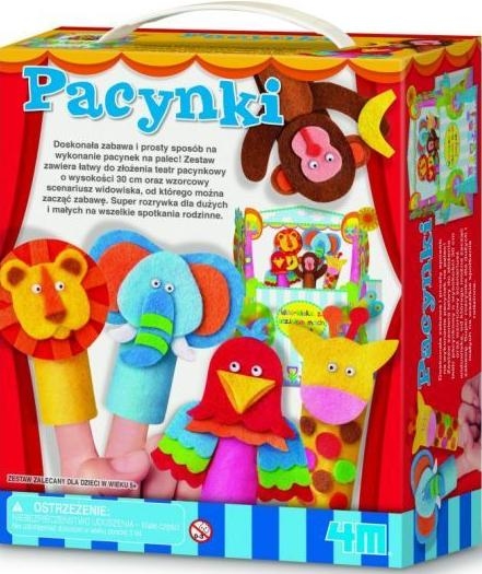 ZRÓB TO SAM, ŁATWE DO WYKONANIAZestaw do samodzielnego wykonania TEATRU Z PACYNKAMI.Doskonała zabawa i prosty sposób na wykonanie pacynek na palec!Zestaw zawiera łatwy do złożenia teatr pacynkowy o wysokości 30 cm oraz wzorcowy scenariusz widowiska, od którego można zacząć zabawę.Super rozrywka dla dużych i małych na wszelkie spotkania rodzinne.To super zabawa! BAW SIĘ I UCZ JEDNOCZEŚNIE!ZAWARTOŚĆ: 5 gotowych filcowych postaci pacynek filcowe szablony tekturowy teatr tekturowe stojaki samoprzylepne ruchome oczy klej wzorcowy scenariusz widowiska